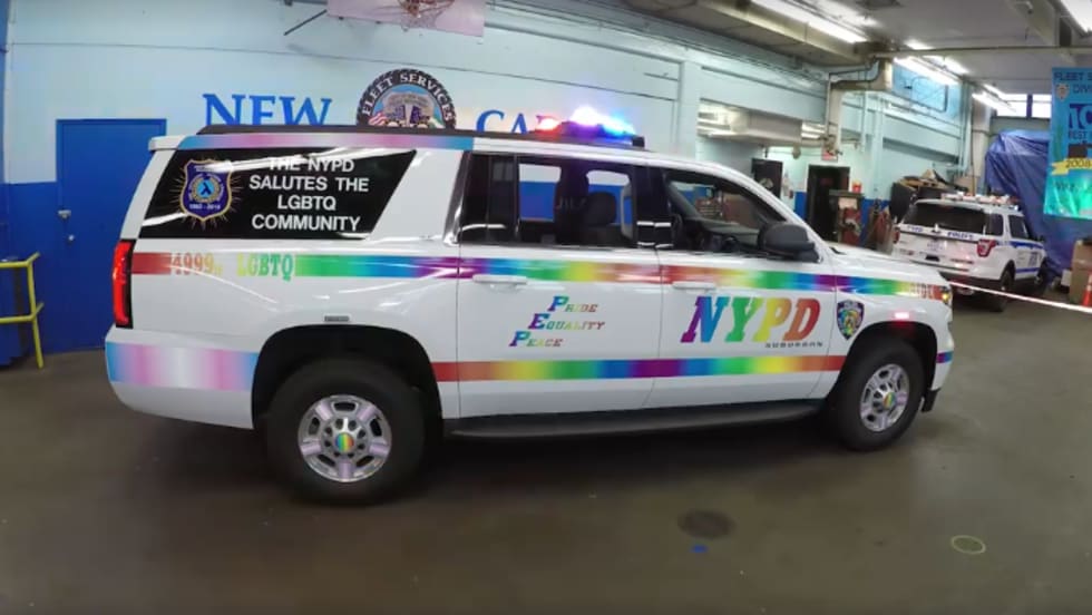 The New York Police Department's pride car is driven each day for the month of June. Watch NYPD fleet technicians change out decals for its police car as well as residents' reactions to the vehicle.