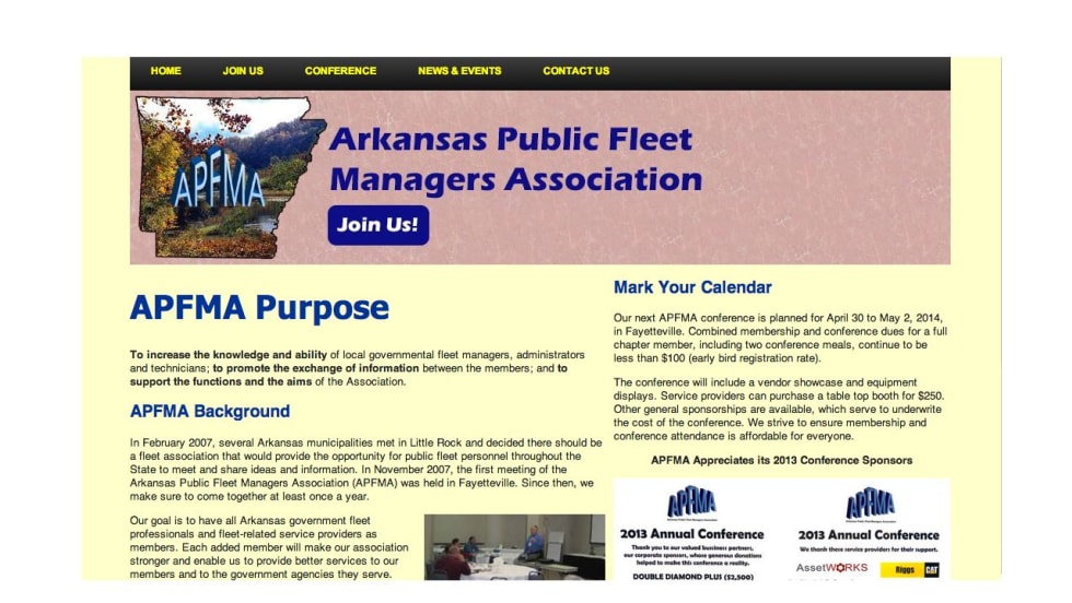 The Arkansas Public Fleet Managers Association (APFMA) today launched a user-friendly website allowing public fleet professionals and industry service-related providers to join the organization and register for the annual conference.