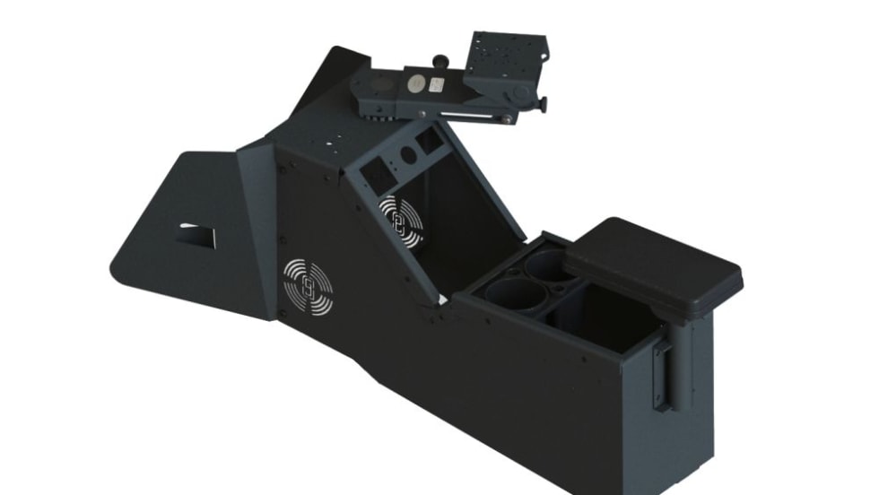 Gamber-Johnson's no-drill console box is designed specially for the 2020 Ford Police Interceptor Utility. It allows fleets to mount additional devices to the console, including radios, lights, and controls.