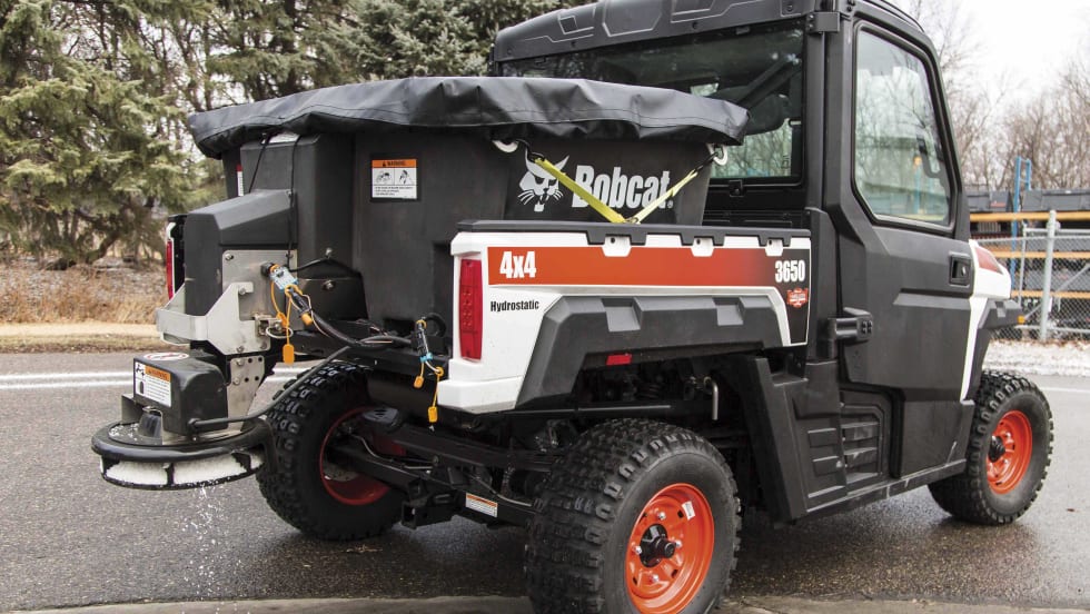 The Bobcat Company' spreader attachment, available for MY-15 3400, 3600 and 3650 utility vehicles, is specifically fitted for the cargo box of these vehicles.