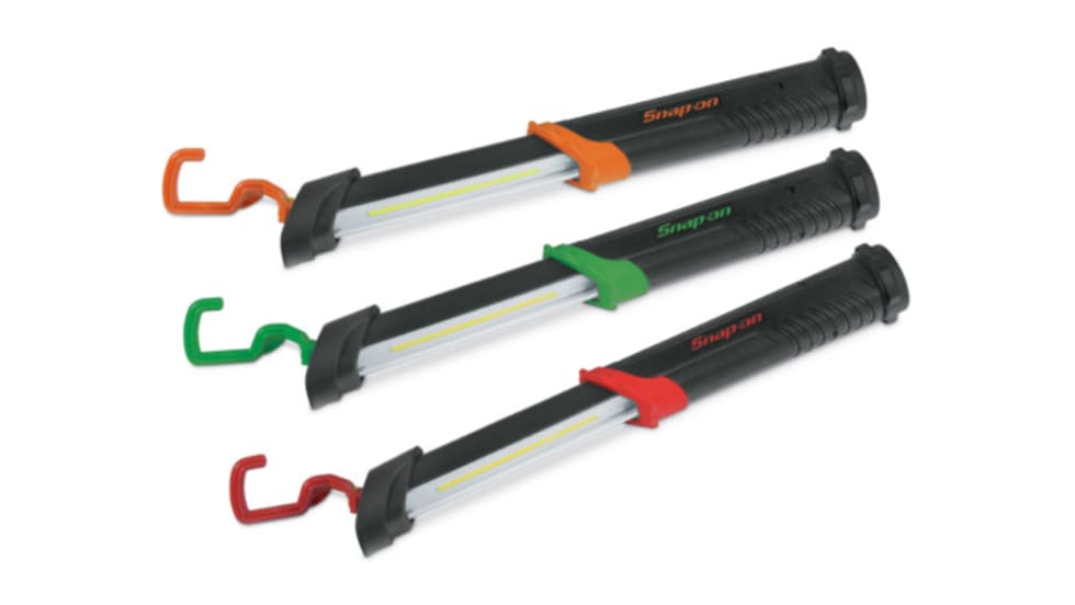 Snap-On’s ECFBAR300 rechargeable shop light can operate for three- or six-hour runtimes depending on the setting.
