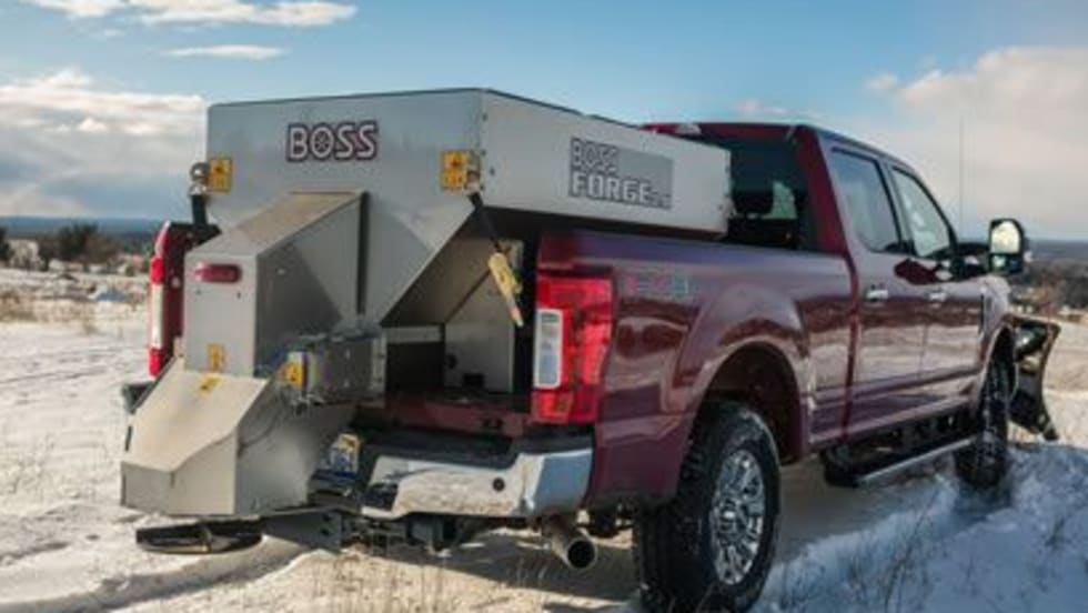 Available for winter 2017, the BOSS FORGE is one of the few stainless steel spreader models in its class to offer both pintle feed and auger chain systems with the same hopper and a planetary gearbox designed to deliver high-efficiency performance across a wide range of ice control material.