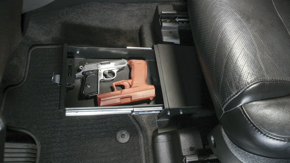 The stealthy design fits beneath the driver or passenger front seats, completely out of sight from outside the vehicle.