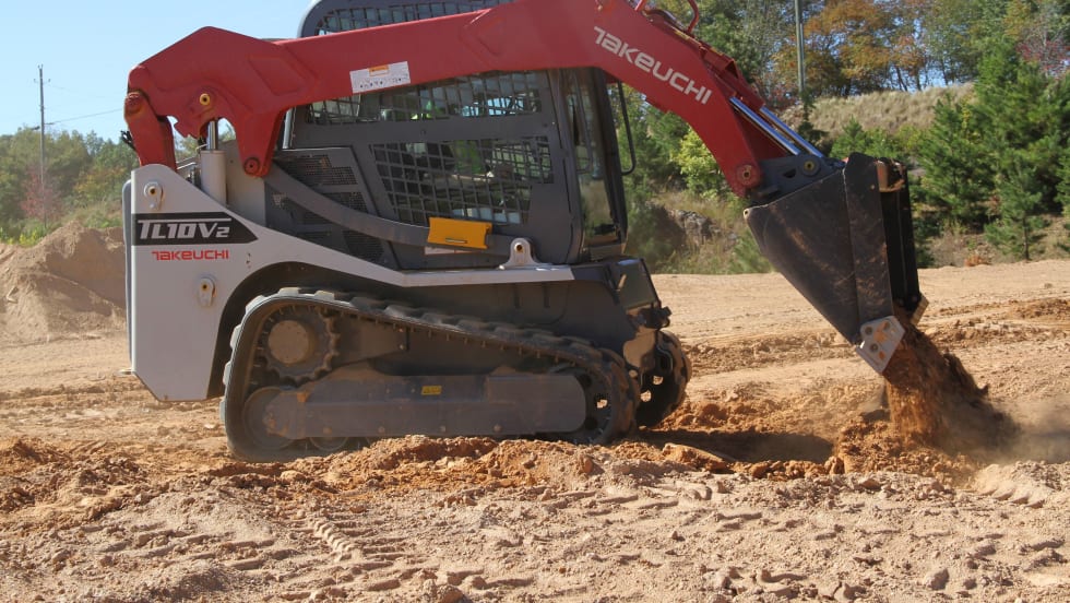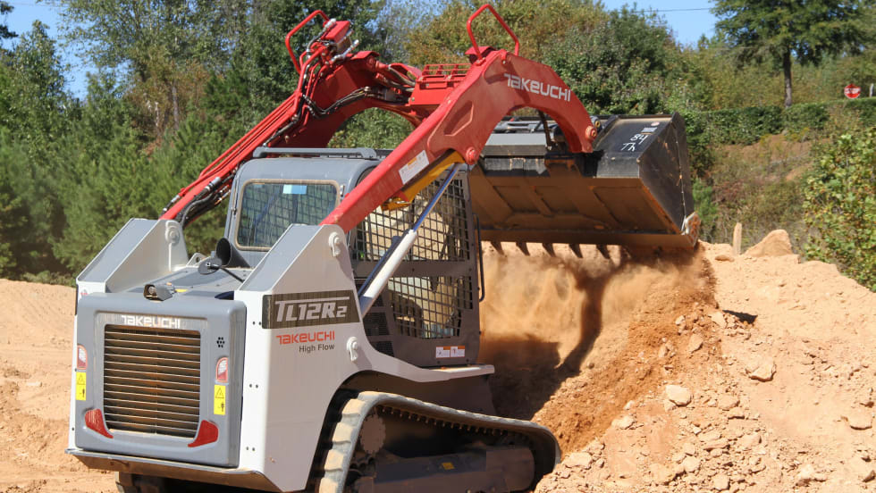 The Takeuchi TL12R2 radial track loader is Final Tier 4 emission compliant and features an operating weight of 12,530 lbs. It delivers over 6.5% more operating capacity and has a tipping load of 8,629 lbs.