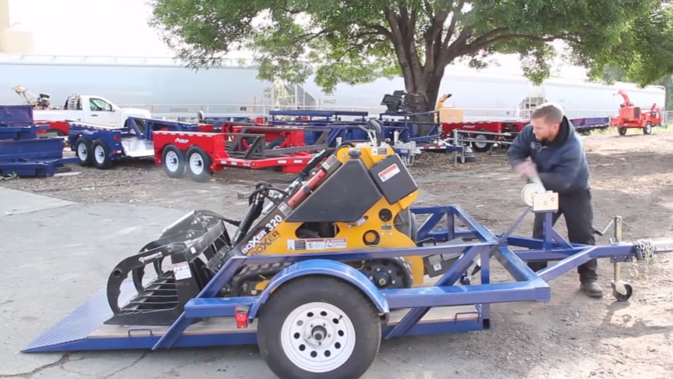 The Air-tow Trailers RS8-20 is a flatbed, drop-deck trailer that stays level as it raisers or lowers.