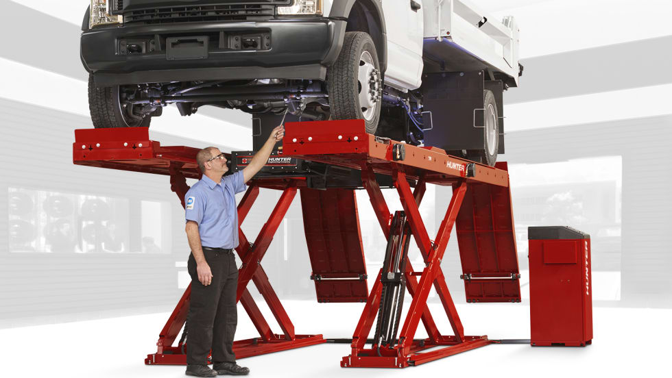 The RX14 features a low-profile design. Fully Integrated Alignment speeds alignment service by 60% with a synchronized aligner and lift rack.