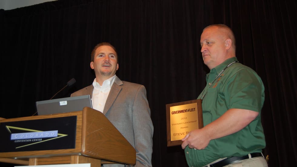 DENVER – Steve Riley, Automotive Director for the City of Coral Cables, Fla., earned the 2012 Government Fleet Magazine Visionary Leadership Award for being an innovative fleet manager at the 2012 Government Fleet Expo & Conference (GFX) on June 20.