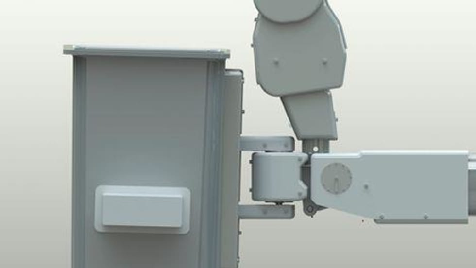 The Swing Arm option incorporates the Terex articulating, telescopic boom design with an additional platform arm that can rotate 215 degrees to allow operators to reach both sides of the utility pole without having to reposition the truck, according to the company.