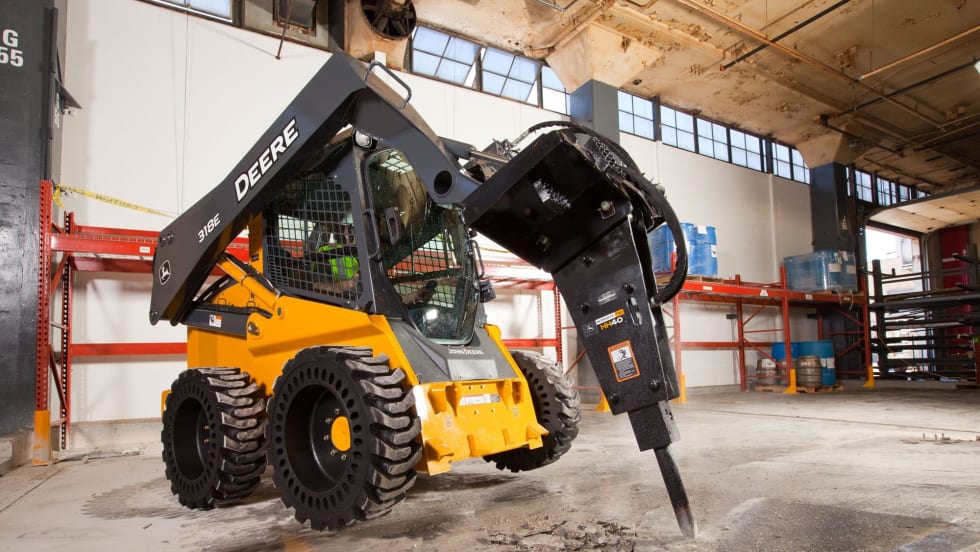 The 318E and 320E skid steer loaders are new mid-frame additions to John Deere’s E-Series line. Both machines are powered by Yanmar Final Tier 4 diesel engines.