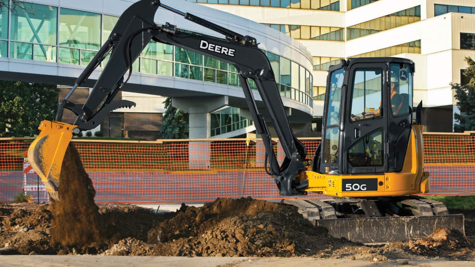 The compact excavators are outfitted with a DOC/DPF aftertreatment device to meet final Tier 4 (FT4) emissions requirements.