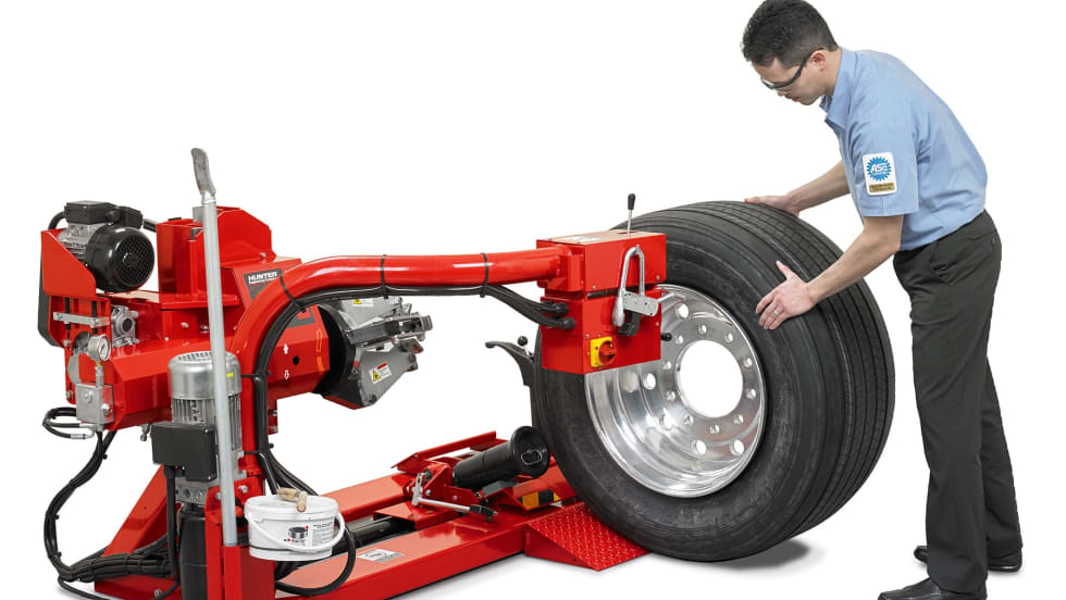 The TCX625 Plus includes Hunter's heavy-duty tire changer and a variety of time-saving accessories. Its service times are comparable to manual methods with a safer pedal-controlled inner roller.
