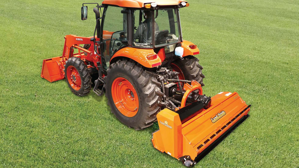 Land Pride’s FM25 Series flail mower features three different blade options, a rear access door for easy knife changes, and dual hitches for offsetting.