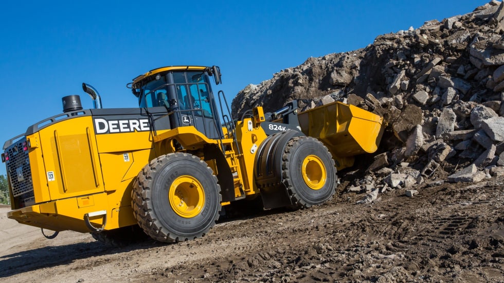 John Deere’s K-Series four-wheel drive wheel loader lineup’s new models — 744K-II, 824K-II, and 844K-II — meet final Tier 4 emissions standards.