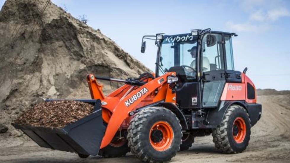 Kubota's R530 and R630 wheel loaders feature air conditioned cabs, large entrance and operator’s spaces, and on-demand differential lock and multi-function controllers.