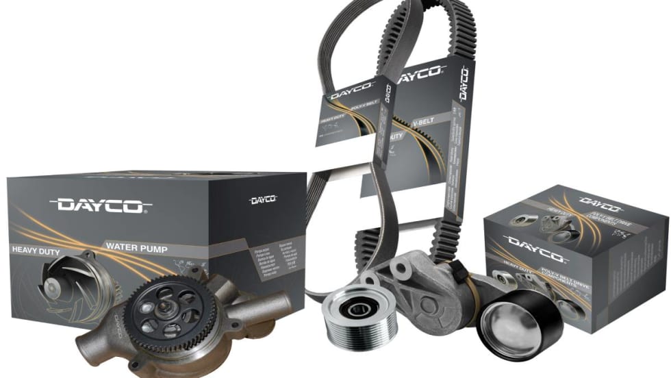 New part numbers for raw-edge v-belts, industrial belts, water pumps, pulleys, and tensioners are now available for large machines and off-highway vehicles.