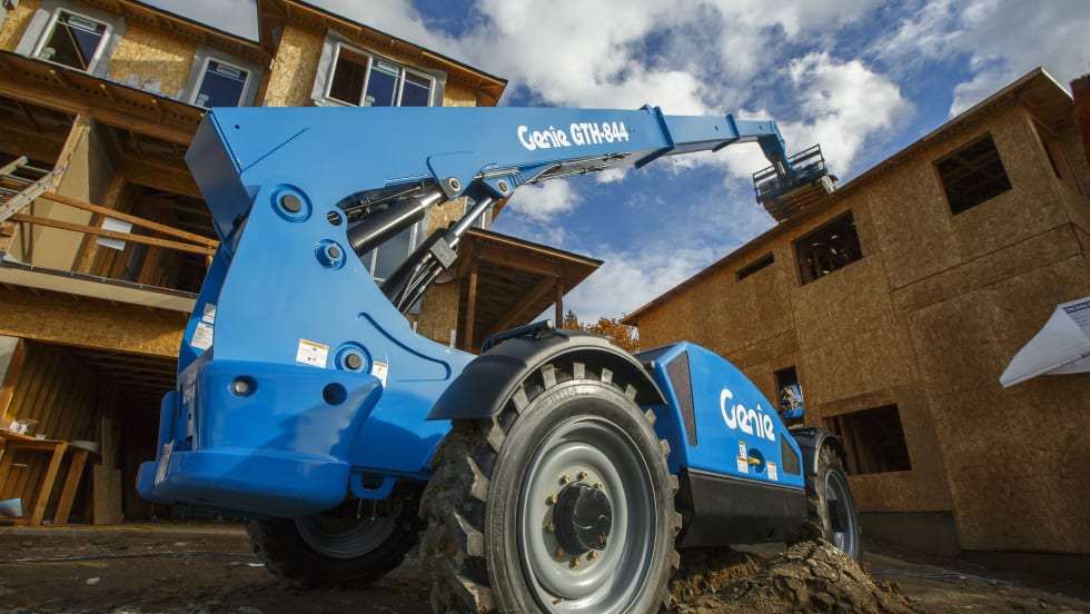 The Genie GTH-844 rough terrain telehandler features a high-torque version of the Deutz turbocharged 3.6L engine, which is optimized for a 74-hp performance.