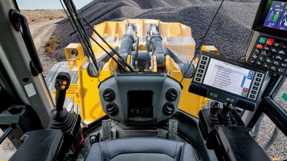 John Deere four-wheel-drive L-Series wheel loaders can now be equipped with a factory-installed John Deere Payload Weighing System.