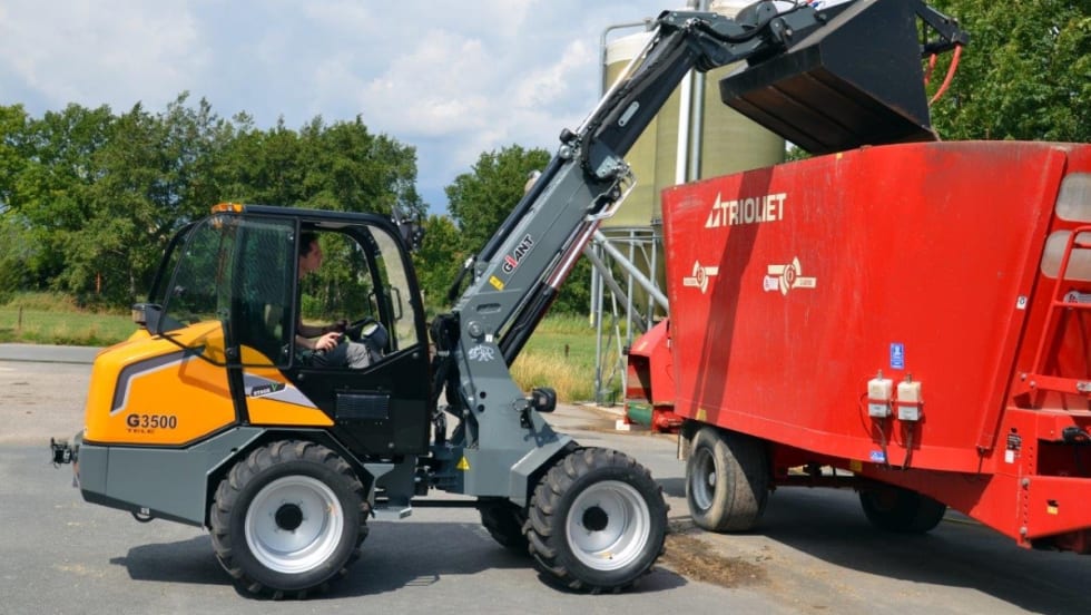 The Giant G3500-series articulating loader delivers substantial power and lift capacity in a compact footprint.