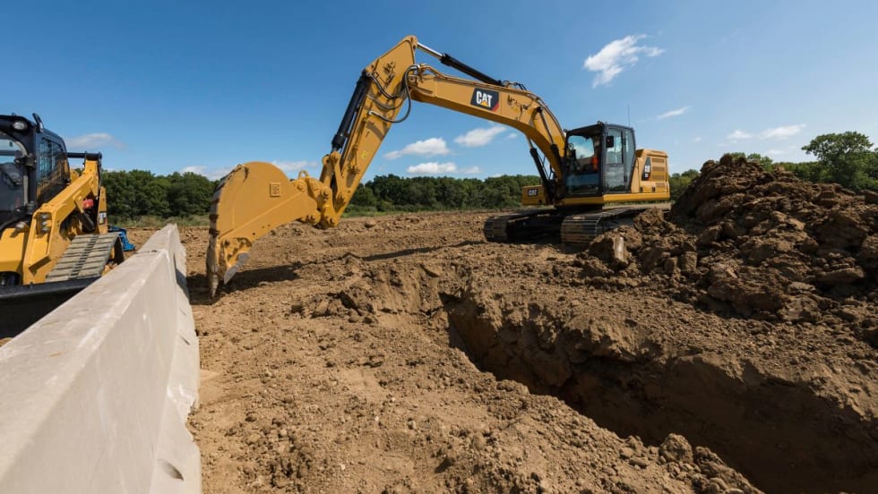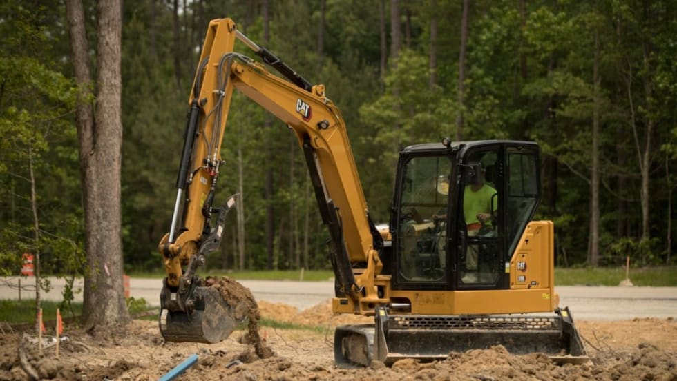 Caterpillar’s 20-ton and 36-ton excavators include an e-fence feature, which helps the machines work safely under structures or near traffic.