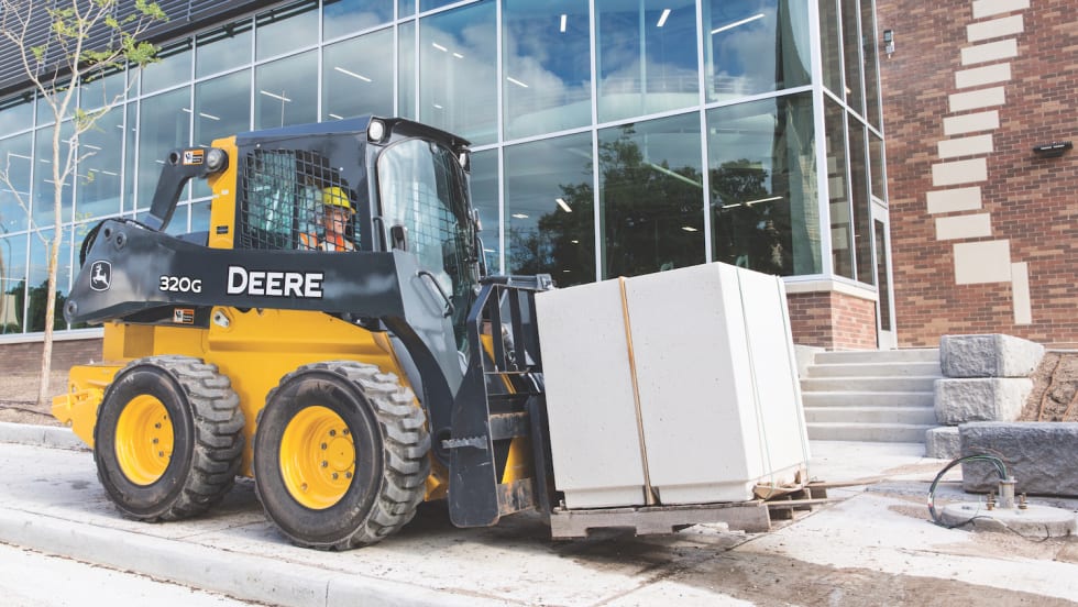 The new John Deere G-Series mid-frame 320G and 324G skid steers and the 325G compact track loader feature Yanmar Final Tier 4 engines and horsepower range of 69 to 74 hp.