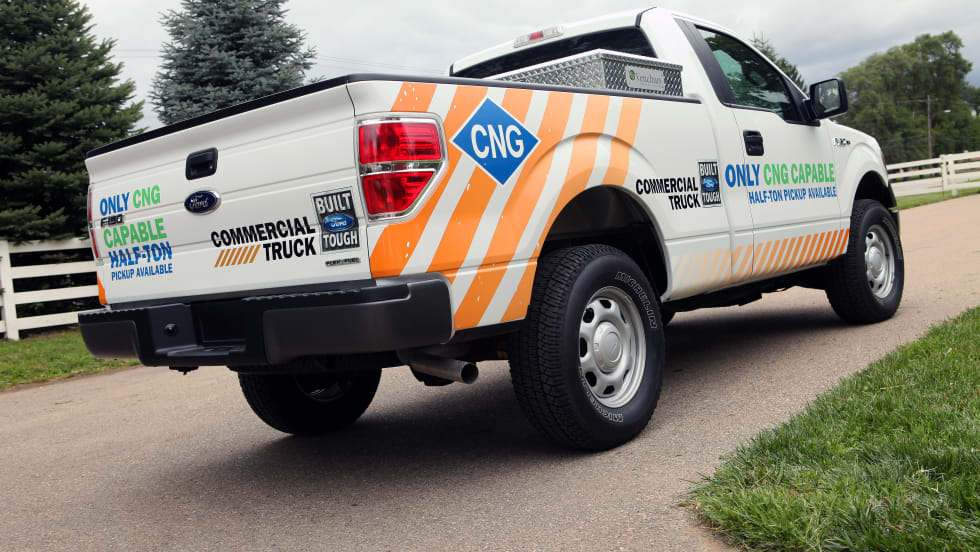 The 2014 Ford F-150 with the 3.7L V-6 engine will be available this fall with a factory-installed, gaseous-fuel prep package so it can operate on compressed natural gas (CNG) or liquefied petroleum gas (LPG, a.k.a. propane), or gasoline through separate fuel systems.