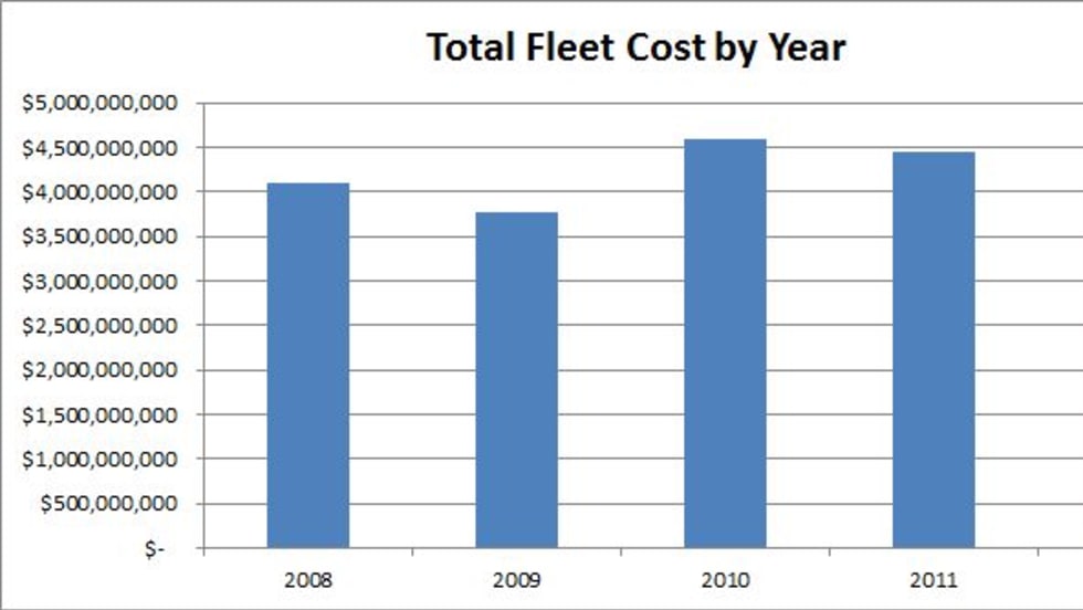 Federal agencies reduced their fleet costs by $88 million in fiscal-year 2012, a 1.98% decrease over FY-2011 levels. A 10,000-vehicle reduction helped contribute to the reduced fleet costs.