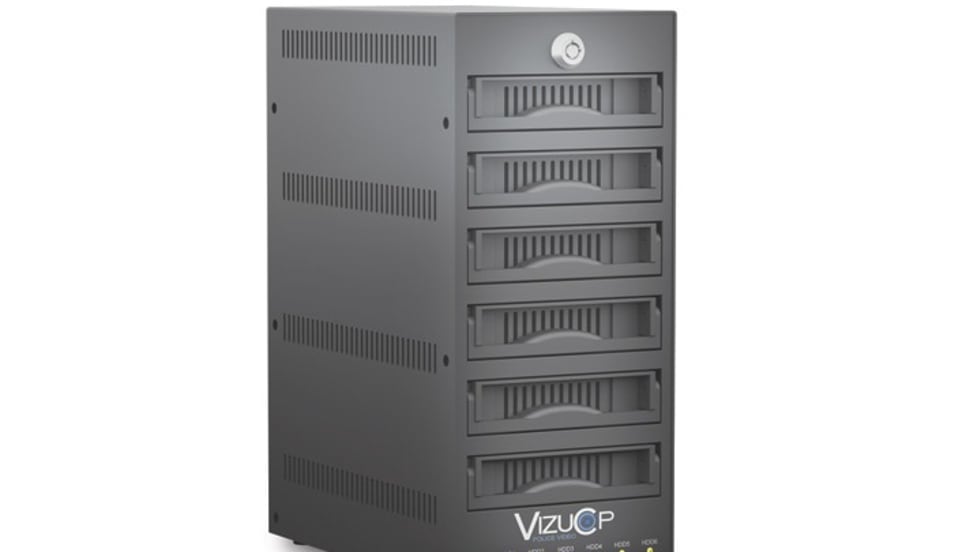 The VizuCop 360 in-car video system for law enforcement offers up to eight channels of video and eight channels of audio. Features include: 900-line analog-to-digital resolution, 5-inch rearview mirror monitor, Wifi download, and streaming video.
