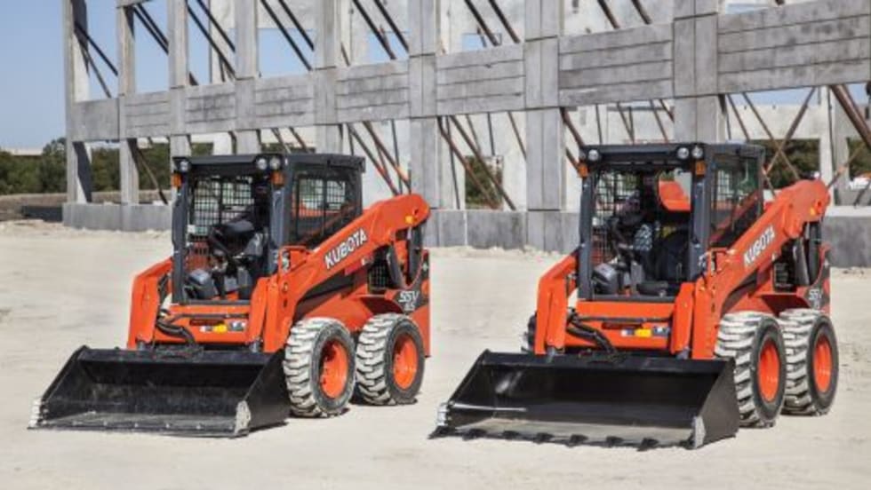 The SSV65 and SSV75, Kubota's first skid steer loaders, have standard two-speed travel and optional high-flow hydraulics.