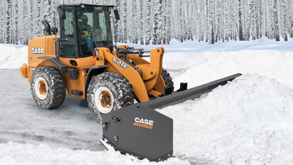Case Construction Equipment’s new line of six heavy- and light-duty sectional snow pushers have moldboard sections that move independently, allowing each section to shift up and down in response to uneven pavement or obstacles.
