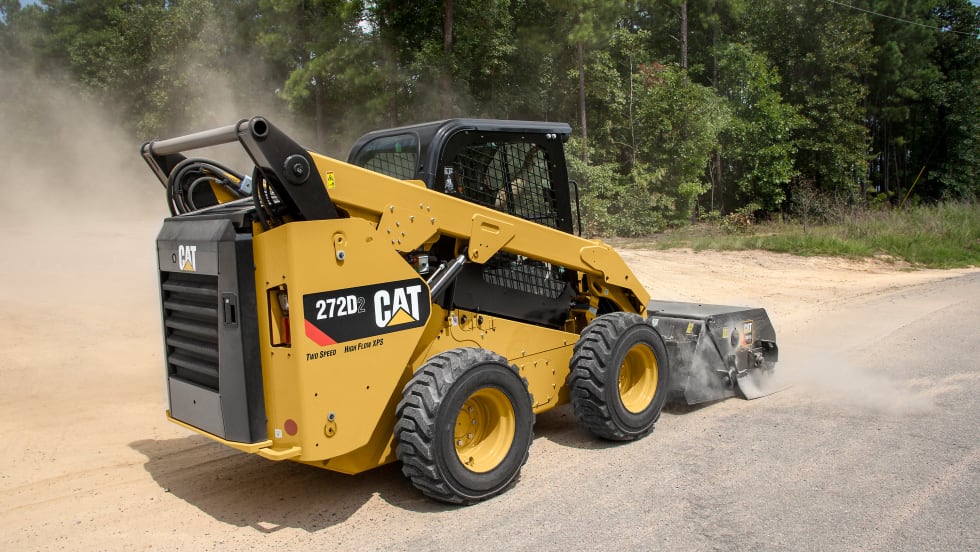The Caterpillar 272D2 skid steer loader, 297D2 multi-terrain loader, and 299D2 compact track loader — along with their more powerful XHP counterparts— have a vertical-lift loader linkage and use a Cat C3.8 engine meeting U.S. EPA Tier 4 final emissions standards.