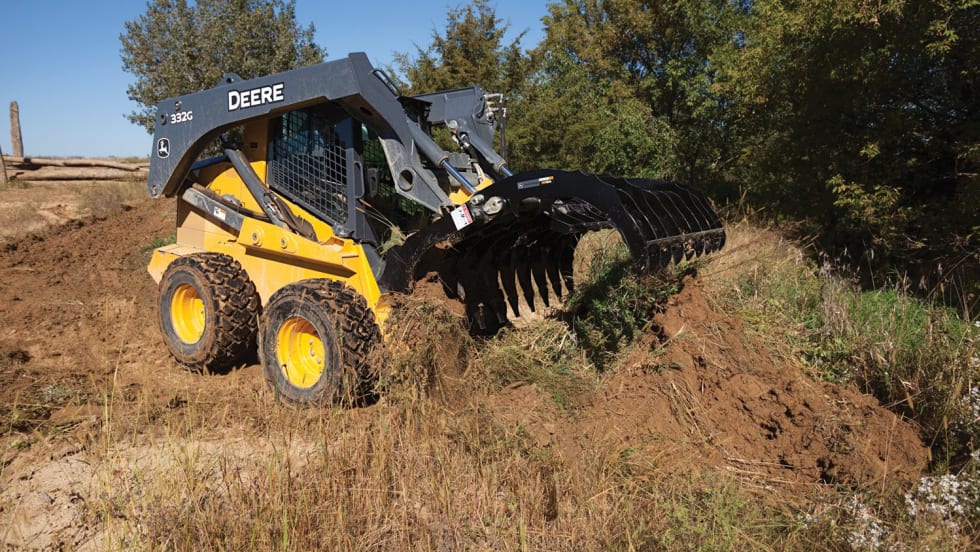 John Deere’s new root rakes (RR72, RR78 and RR84) are optimized to work with certain John Deere skid steers, compact track loaders, and compact wheel loaders. These attachments can be a more economical option over dozer blades.