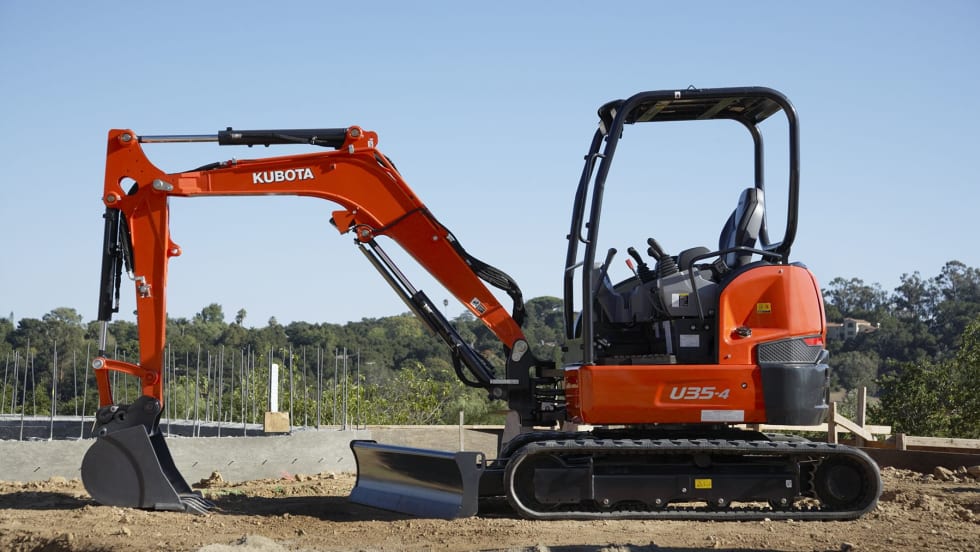 Powered by a Kubota 24.8 gross hp direct injection engine, the excavator has a max dumping height of 11 feet, 7 inches and digging depth of 9 feet, 8.9 inches.