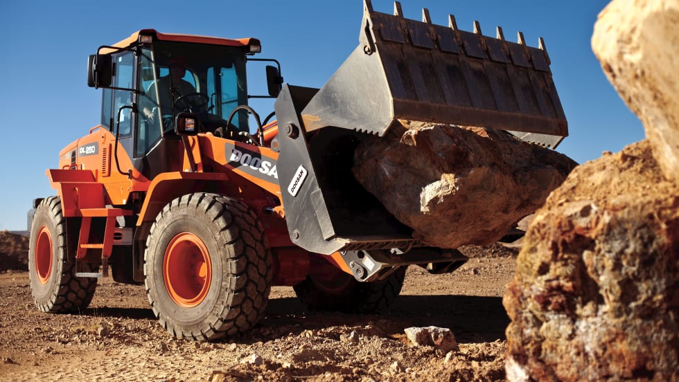 The upgraded 3.7-cubic-yard interim Tier 4-compliant (iT4) DL250-3 wheel loader features 172 hp, up from 163 hp in its previous design. It is engineered with a breakout force of 27,120 lbs., a full-turn tipping capacity of 20,680 lbs., and a dump height of 9 feet 2 inches.