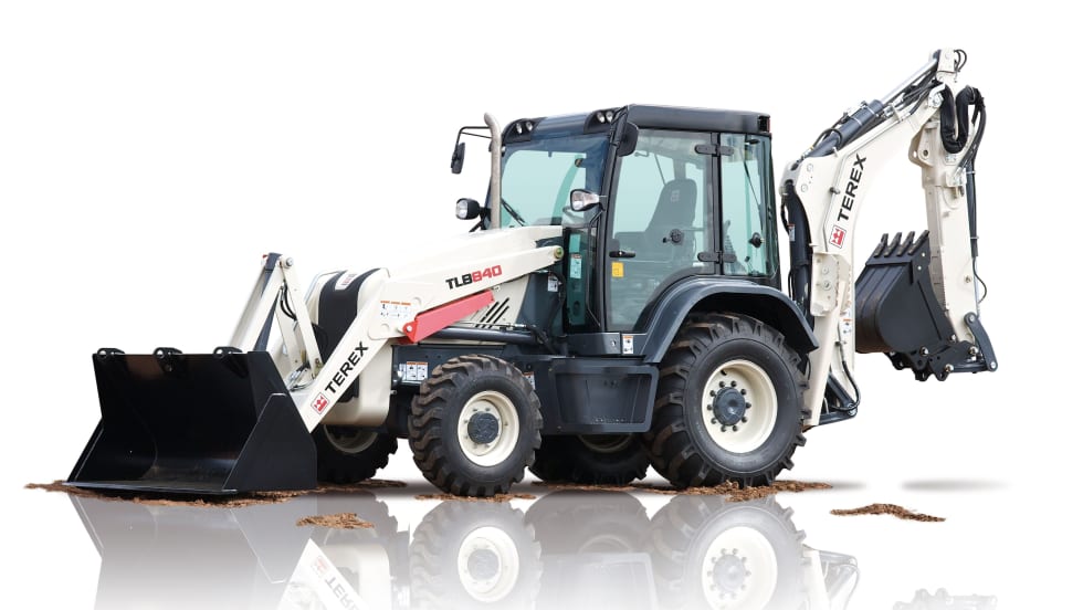 Powered by an electronic, interim Tier 4 Perkins 1204E-E44TA engine and an optional 4-speed servo power synchro transmission with automatic shifting, the 94-hp Terex TLB840 backhoe loader can be used for digging, reaching, lifting, and loading applications.