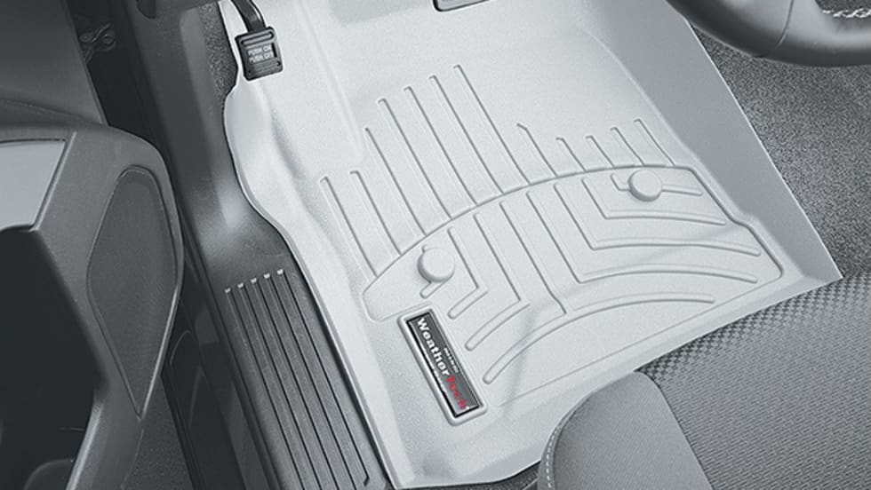 WeatherTech FloorLiners are laser-measured for specific vehicle makes and models for custom-fit protection. The mats line the vehicle's interior carpet up the front and back sides of the foot well.
