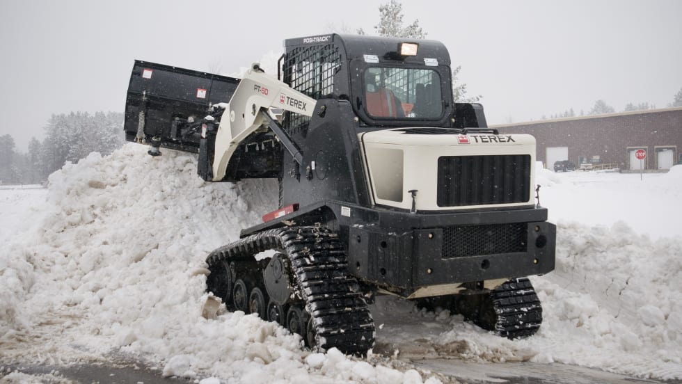 The Terex PT-60 (60 hp/44.7kW) is a high performance compact track loader that features a Posi-Track suspended undercarriage technology and two-speed drive motors.