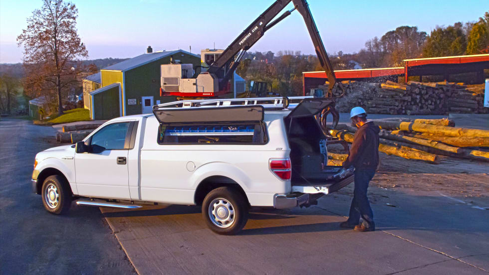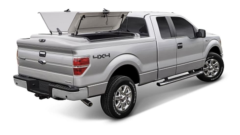 A.R.E.'s WorkCover LS fiberglass tonneau cover fits Ford F-150 short bed trucks from model years 2009 to 2014. The WorkCover LS features doors on each side. The entire cover also opens from the rear of the truck using a hinge system at the front of the cover.