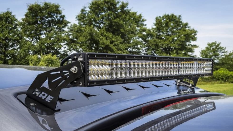 The Rigid E-Series LED Light Bar is available as optional equipment on A.R.E. fiberglass MX Series truck caps.