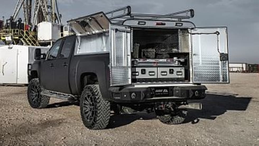 The ToolMaster Series by A.R.E. offers a fiberglass commercial cap solution, featuring heavy-duty doors and toolboxes, along with a commercial grade ladder rack.