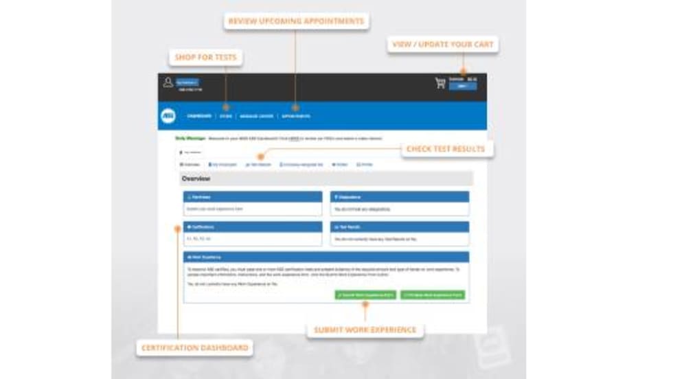 The National Institute for Automotive Service Excellence (ASE) has launched a new myASE web portal where service professionals can register, schedule tests, and view certification information.