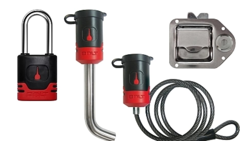 The Bolt Lock line includes a 5/8” receiver lock, coupler pin lock, padlock, cable lock, trailer coupler lock as well as a locking recovery hook.