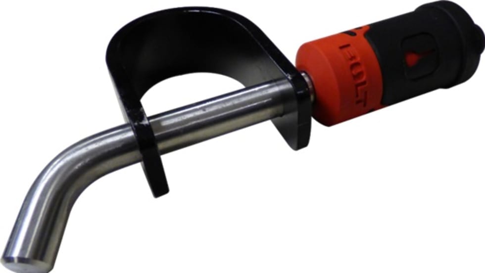 BOLT Locks' new Fifth Wheel King Pin Locking System features a U-shaped black powder-coated hardened steel collar that wraps around the Fifth Wheel King Pin. It attaches to a BOLT 5/8-inch Receiver Lock to prevent fifth wheel trailer theft.