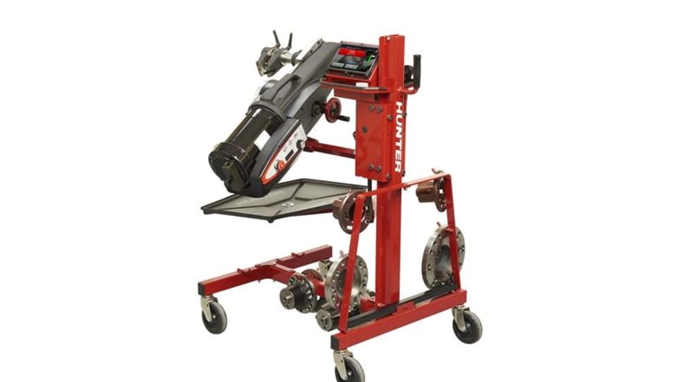 The AutoComp Elite brake lathe from Hunter features the AutoComp compensation system, which determines the position of the internal plates to maximize speed and accuracy without operator intervention.
