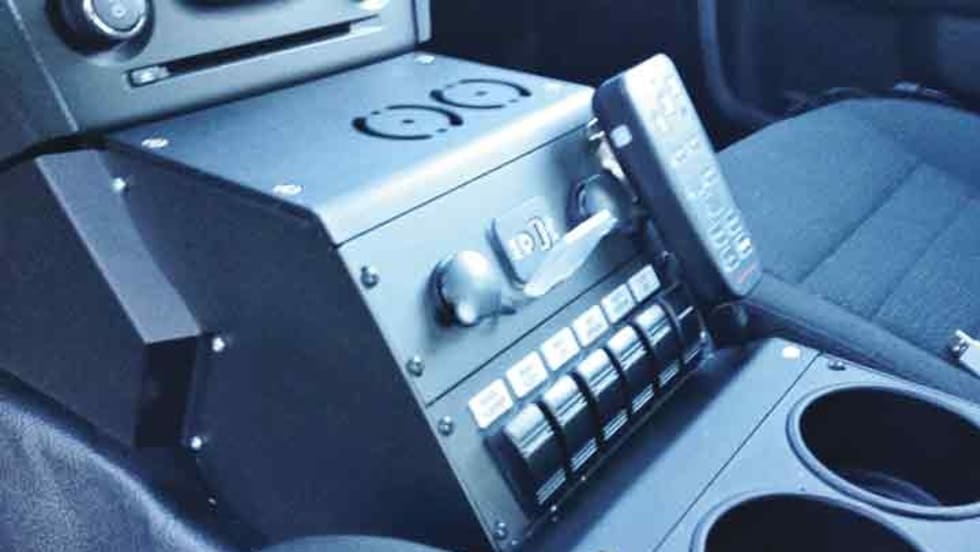 Designed for the Dodge Charger Pursuit, Brooking Industries' new console installs easily using factory mounting studs; no additional mounting feet or hardware necessary. A dual cup holder, arm rest, and spacer plates are included with each unit.