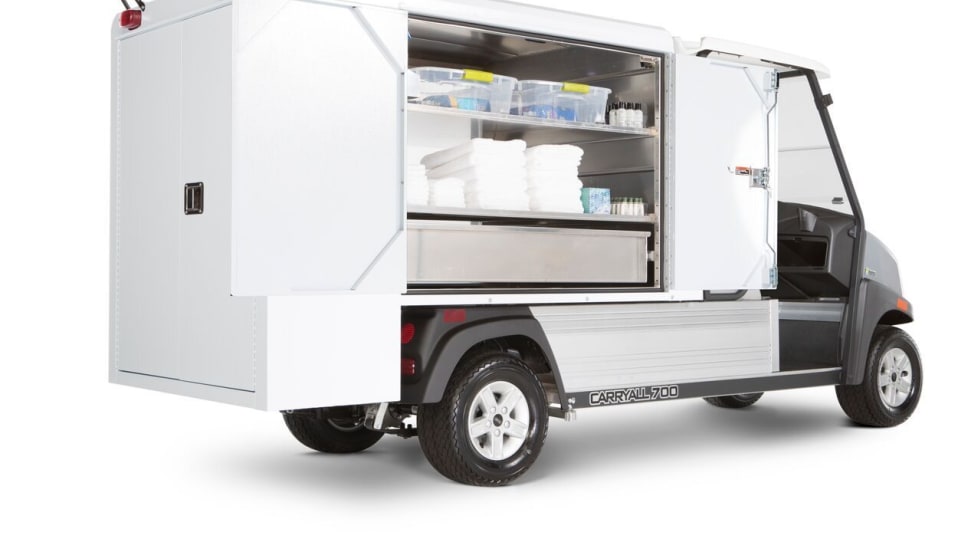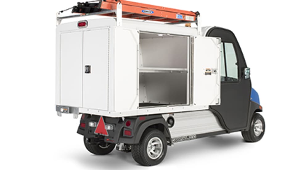 Club Car's two new van box systems for its work utility vehicles feature interior LED lighting, bolt-on panels that allow for easy replacement in case of damage, and reinforced corners that increase durability in commercial applications.