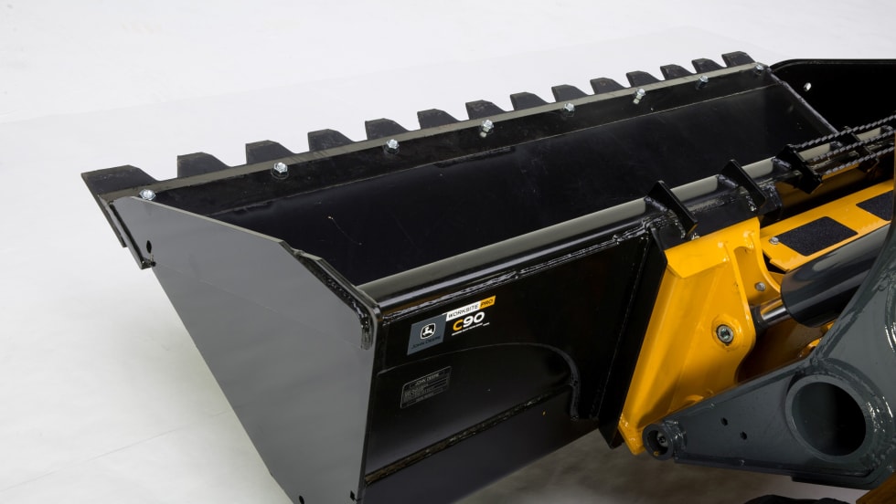 John Deere’s 90-inch severe-duty construction buckets are designed for the large-frame 332G skid steer and 333G compact track loader (CTL).
