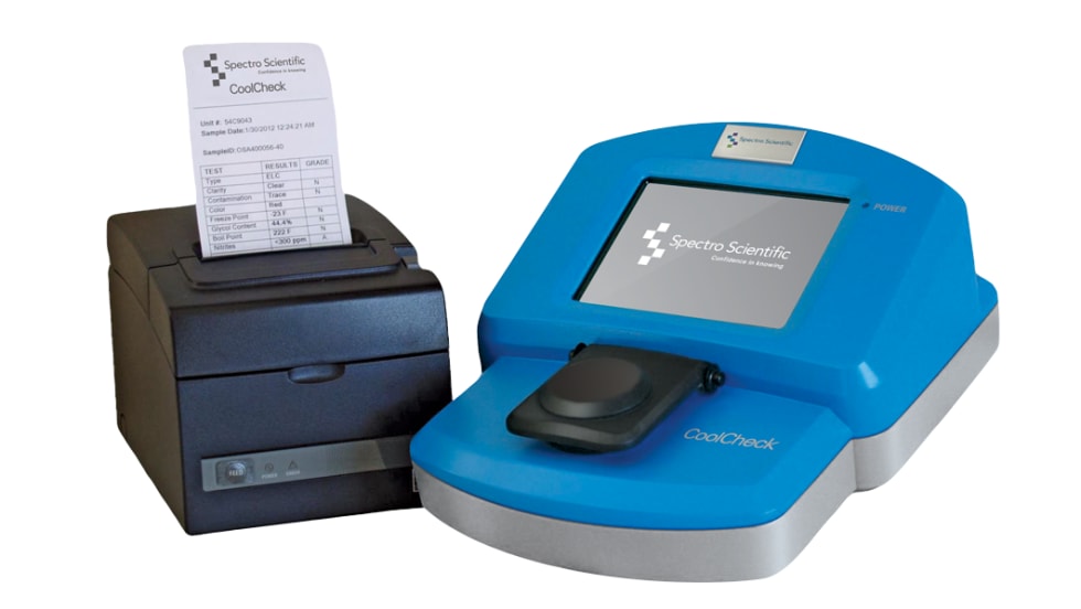 Spectro Scientific’s CoolCheck 2 Coolant Analyzer is designed to automatically test the health of coolant systems and diesel exhaust fluid.