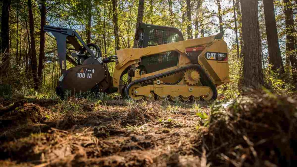 The Cat 299D2 XHP Land Management Compact Track Loader is built for demanding vegetation-management applications, including mulching, brush-cutting, vegetation control, and mowing.
