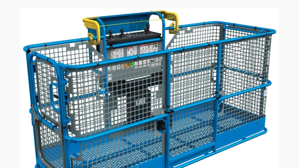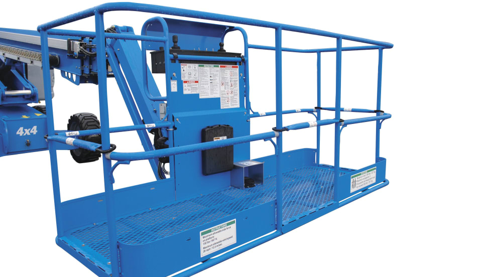 Genie’s new platform baskets for Genie boom lifts offer three entry points on an 8-ft. basket or two entry points on a 6-ft. basket to enhance operator mobility.