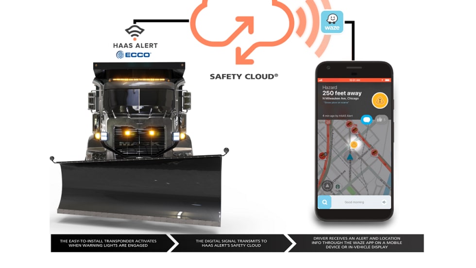 The Connected Safety solution, integrated with Ecco's lighting solutions, alerts drivers when a first responder, tow truck driver, or roadway worker is nearby.